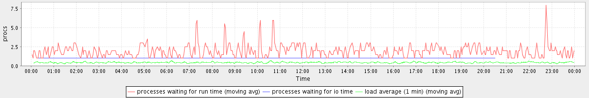 avg(processes waiting for run time) = 0.36 avg(processes waiting for io time) = 0.01 avg(load average (1 min)) = 0.43