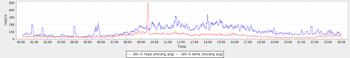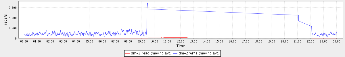 avg(dm-2 read) = 21.79 avg(dm-2 write) = 547.80