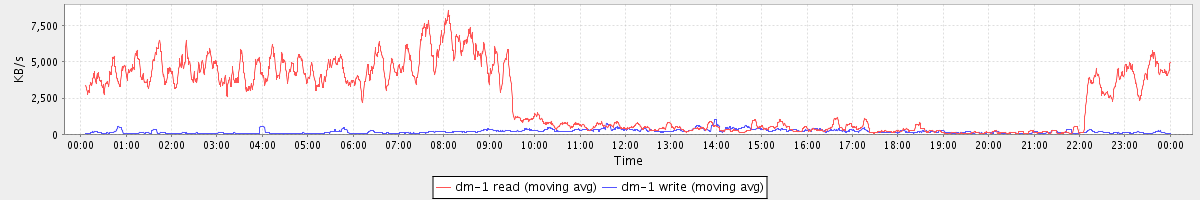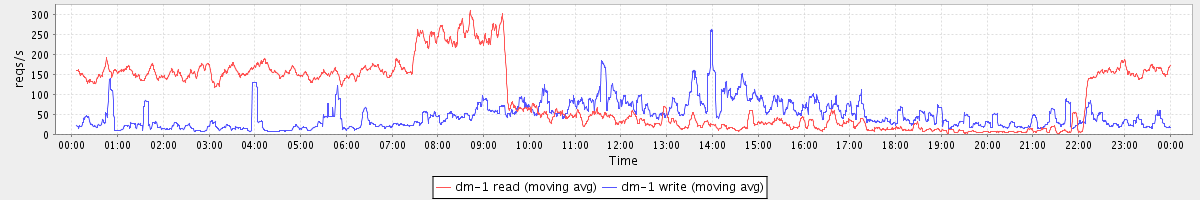 avg(dm-1 read) = 2367.60 avg(dm-1 write) = 192.24