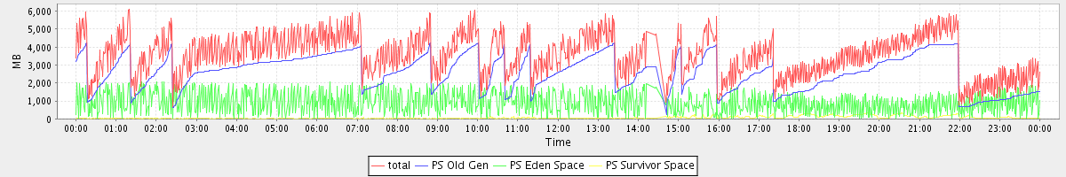 avg(total) = 3565.35 avg(PS Old Gen) = 2587.24 avg(PS Eden Space) = 911.26 avg(PS Survivor Space) = 66.86