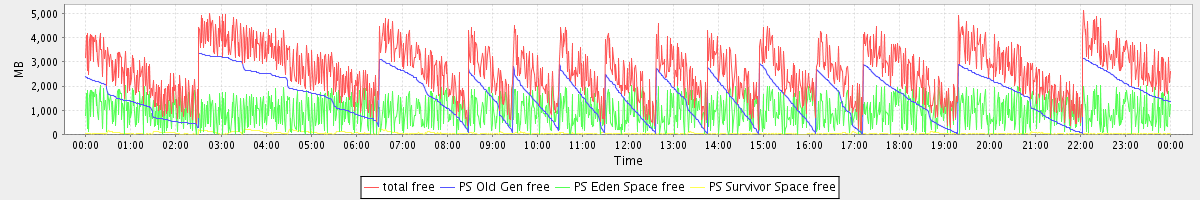 avg(total free) = 2633.53 avg(PS Old Gen free) = 1607.27 avg(PS Eden Space free) = 983.88 avg(PS Survivor Space free) = 42.38