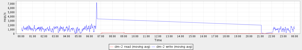 avg(dm-2 read) = 14.47 avg(dm-2 write) = 391.14
