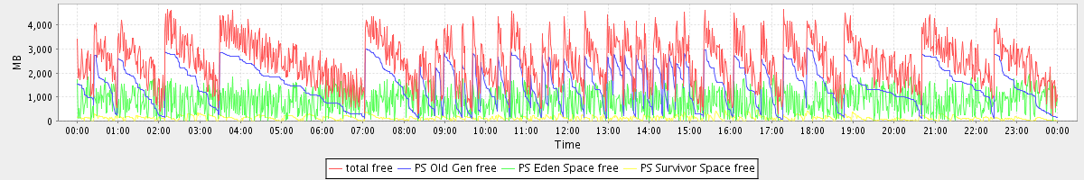 avg(total free) = 2488.12 avg(PS Old Gen free) = 1521.01 avg(PS Eden Space free) = 843.22 avg(PS Survivor Space free) = 123.89