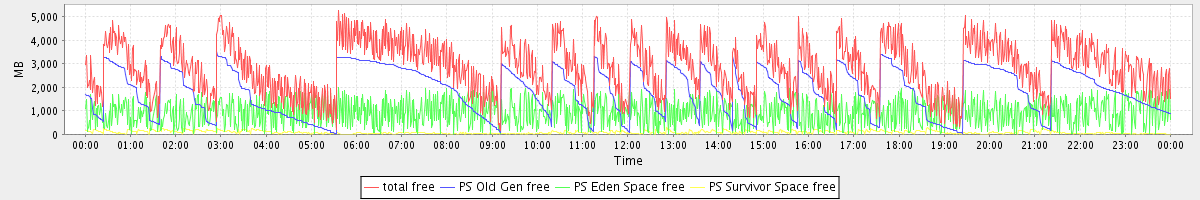 avg(total free) = 2865.97 avg(PS Old Gen free) = 1846.13 avg(PS Eden Space free) = 934.20 avg(PS Survivor Space free) = 85.63