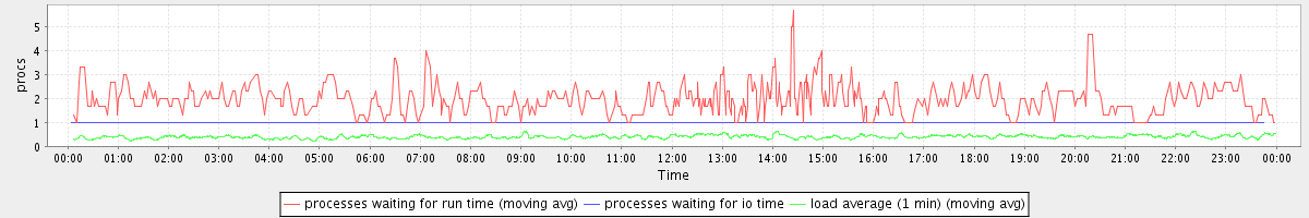 avg(processes waiting for run time) = 0.43 avg(processes waiting for io time) = 0.01 avg(load average (1 min)) = 0.40