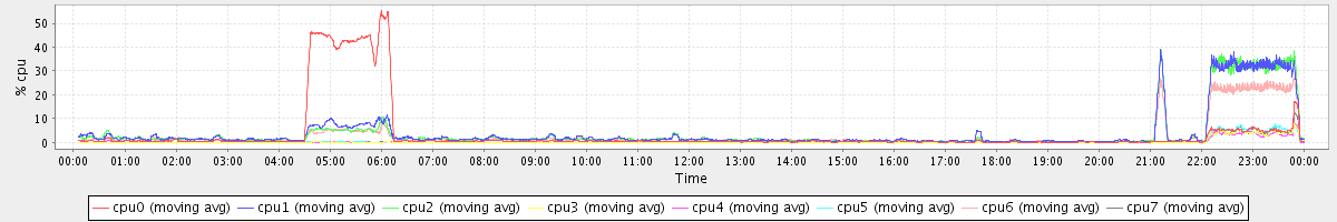 avg(cpu0) = 0.35 avg(cpu1) = 0.06 avg(cpu2) = 0.05 avg(cpu3) = 0.01 avg(cpu4) = 0.01 avg(cpu5) = 0.01 avg(cpu6) = 0.04 avg(cpu7) = 0.01