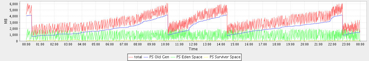avg(total free) = 3134.34 avg(PS Old Gen free) = 2107.55 avg(PS Eden Space free) = 957.63 avg(PS Survivor Space free) = 69.16