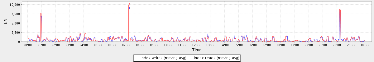 avg(Index writes) = 615.99 avg(Index reads) = 569.57