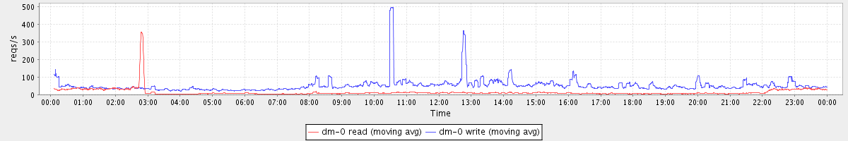 avg(dm-0 read) = 296.50 avg(dm-0 write) = 482.87