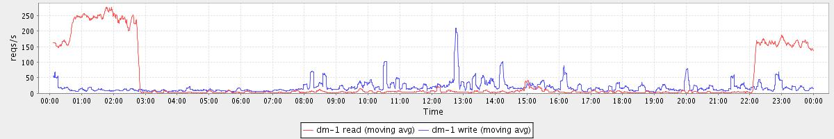 avg(dm-1 read) = 1174.87 avg(dm-1 write) = 80.40