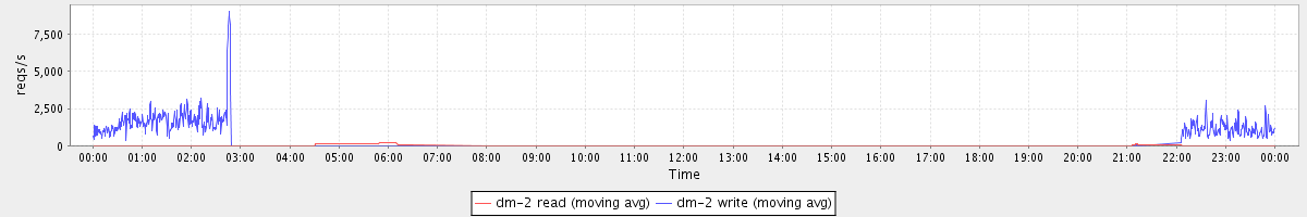 avg(dm-2 read) = 11.50 avg(dm-2 write) = 293.45