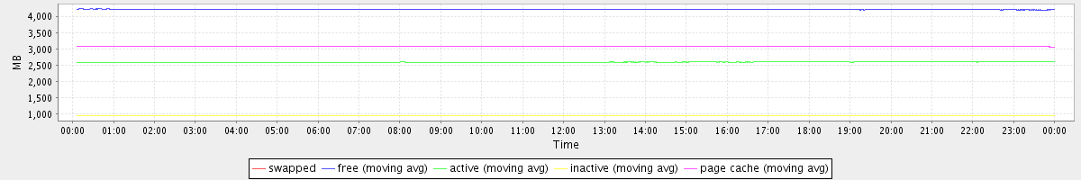 avg(swapped) = 0.00 avg(free) = 4205.38 avg(active) = 2588.96 avg(inactive) = 958.76 avg(page cache) = 3065.77