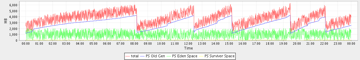 avg(total) = 3780.82 avg(PS Old Gen) = 2741.10 avg(PS Eden Space) = 1010.88 avg(PS Survivor Space) = 28.85
