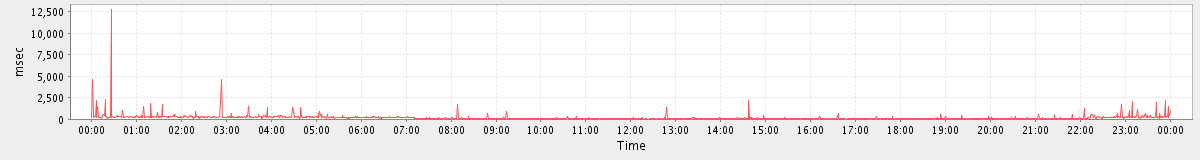 avg(GetMiniCalRequest) = 868.67 avg(SendMsgRequest) = 314.05 avg(AutoCompleteGalRequest) = 1365.78 avg(SearchGalRequest) = 6078.10 avg(BackupQueryRequest) = 1012.40 avg(GetFreeBusyRequest) = 474.00 avg(FolderActionRequest.empty) = 1601.48 avg(SyncGalRequest) = 142597.33 avg(BackupRequest) = 369124.00 avg(GetQuotaUsageRequest) = 2389.00