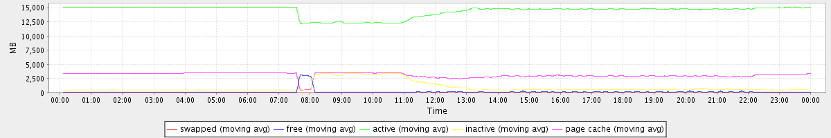 avg(swapped) = 0.22 avg(free) = 158.44 avg(active) = 14445.68 avg(inactive) = 957.70 avg(page cache) = 3110.78