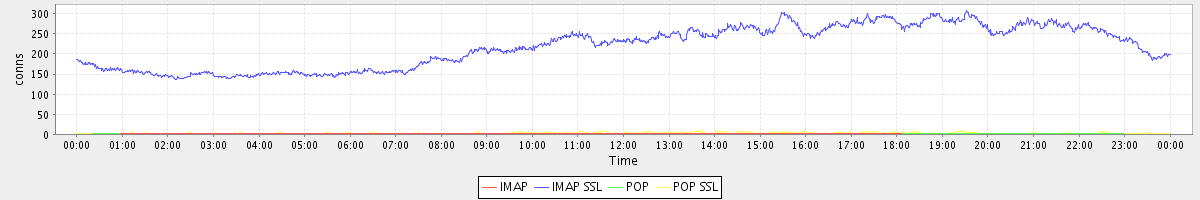 avg(IMAP) = 0.10 avg(IMAP SSL) = 218.60 avg(POP) = 0.01 avg(POP SSL) = 2.77