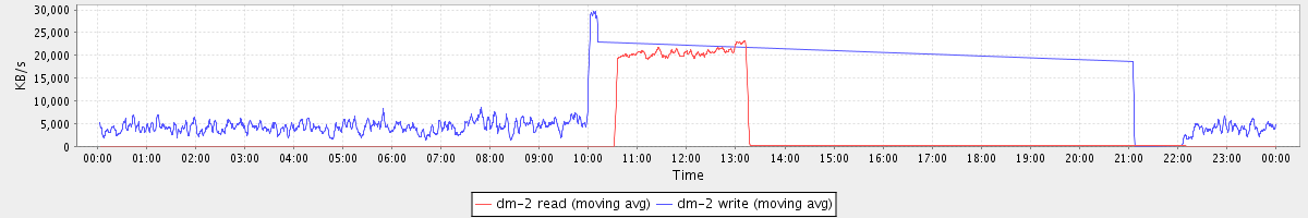 avg(dm-2 read) = 21.56 avg(dm-2 write) = 591.89