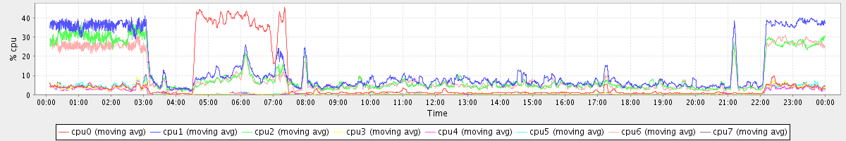avg(cpu0) = 1.72 avg(cpu1) = 1.88 avg(cpu2) = 1.69 avg(cpu3) = 1.17 avg(cpu4) = 1.04 avg(cpu5) = 1.09 avg(cpu6) = 1.58 avg(cpu7) = 1.08