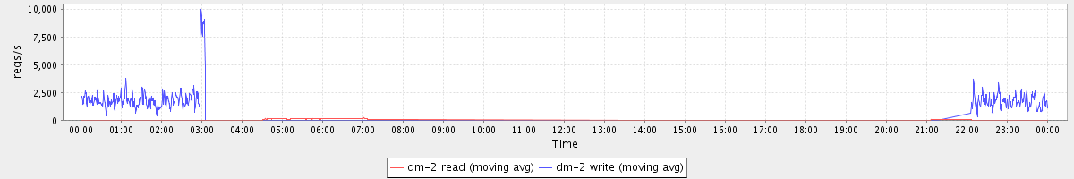 avg(dm-2 read) = 14.56 avg(dm-2 write) = 400.29