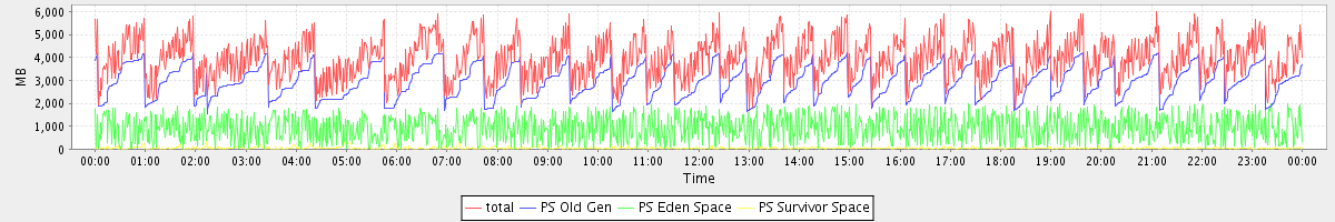 avg(total) = 3935.54 avg(PS Old Gen) = 2959.12 avg(PS Eden Space) = 935.49 avg(PS Survivor Space) = 40.93