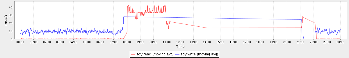 avg(sda read) = 27.02 avg(sda write) = 45.37