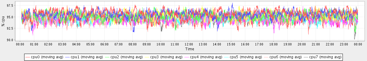 avg(cpu0) = 95.39 avg(cpu1) = 95.45 avg(cpu2) = 95.13 avg(cpu3) = 95.26 avg(cpu4) = 94.54 avg(cpu5) = 94.64 avg(cpu6) = 94.34 avg(cpu7) = 94.79