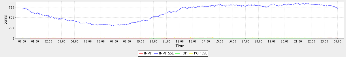 Host zm06.stanford.edu: Mailboxd: Active Connections by Client Protocol