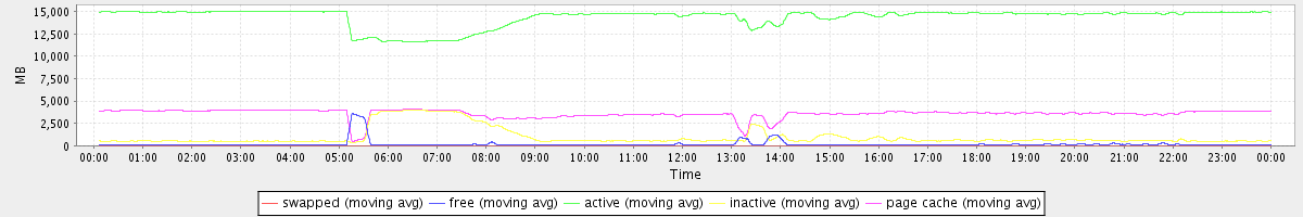 avg(swapped) = 0.23 avg(free) = 164.22 avg(active) = 14362.92 avg(inactive) = 973.38 avg(page cache) = 3586.74