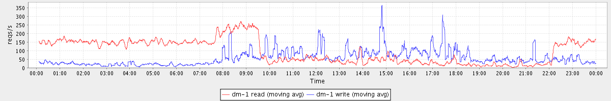 avg(dm-0 read) = 43.73 avg(dm-0 write) = 141.76