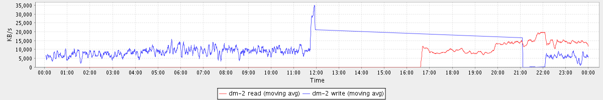 avg(dm-2 read) = 34.07 avg(dm-2 write) = 1232.38