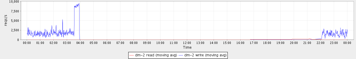 avg(dm-2 read) = 18.77 avg(dm-2 write) = 508.92