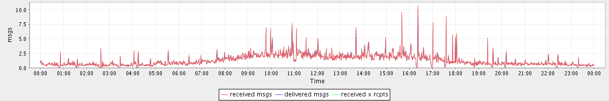 avg(received msgs) = 1.30 avg(delivered msgs) = 1.31 avg(received x rcpts) = 1.31