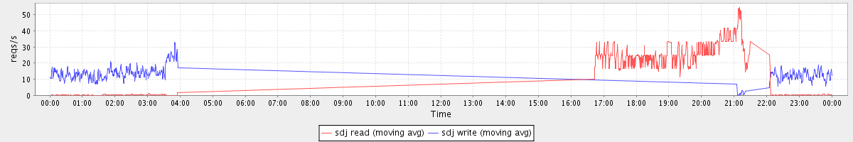 avg(sda read) = 22.57 avg(sda write) = 54.64