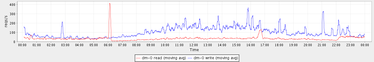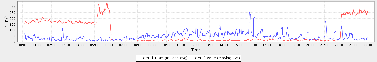 avg(dm-1 read) = 2081.83 avg(dm-1 write) = 184.03