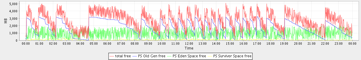 avg(total free) = 2752.40 avg(PS Old Gen free) = 1746.71 avg(PS Eden Space free) = 924.92 avg(PS Survivor Space free) = 80.77