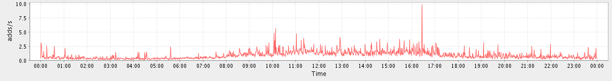 max(GetMsgRequest) = 100.00 max(MsgActionRequest.move) = 156.00 max(SearchConvRequest) = 98.00 max(GetFolderRequest) = 854.00 max(SearchRequest) = 813.00 max(MsgActionRequest.delete) = 63.00 max(NoOpRequest) = 52.00 max(SyncRequest) = 23.00 max(ConvActionRequest.trash) = 47.00 max(GetAppointmentRequest) = 96.00
