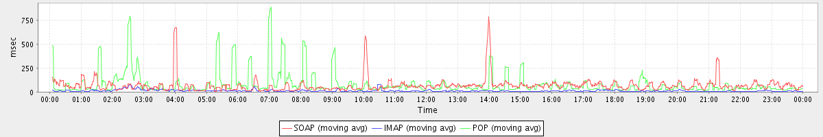 Host zm03.stanford.edu: Mailboxd: Response Time by Client Protocol