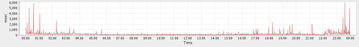 avg(SetAppointmentRequest) = 438.64 avg(AutoCompleteGalRequest) = 525.48 avg(ConvActionRequest.delete) = 617.91 avg(SearchGalRequest) = 2914.44 avg(BackupQueryRequest) = 573.00 avg(GetFreeBusyRequest) = 848.45 avg(FolderActionRequest.empty) = 2213.41 avg(SyncGalRequest) = 131049.47 avg(BackupRequest) = 247300.50 avg(GetQuotaUsageRequest) = 2447.00