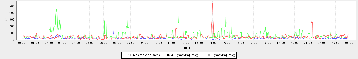 avg(IMAP) = 2.60 avg(IMAP SSL) = 665.29 avg(POP) = 0.00 avg(POP SSL) = 9.28