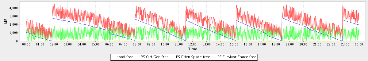 avg(total free) = 2270.28 avg(PS Old Gen free) = 1344.43 avg(PS Eden Space free) = 902.93 avg(PS Survivor Space free) = 22.92
