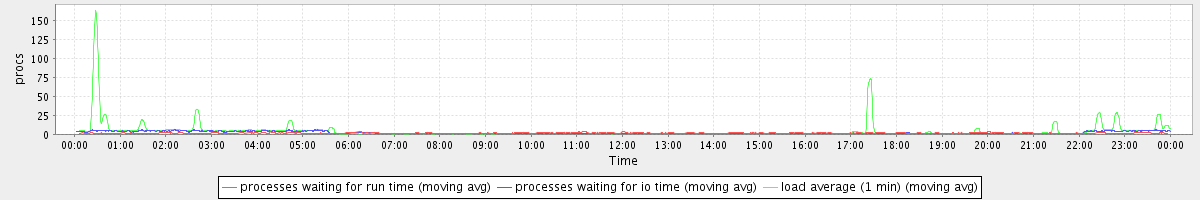 avg(processes waiting for run time) = 0.63 avg(processes waiting for io time) = 1.55 avg(load average (1 min)) = 4.35