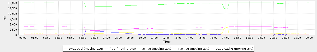avg(swapped) = 115.84 avg(free) = 318.28 avg(active) = 14519.43 avg(inactive) = 739.56 avg(page cache) = 3345.06