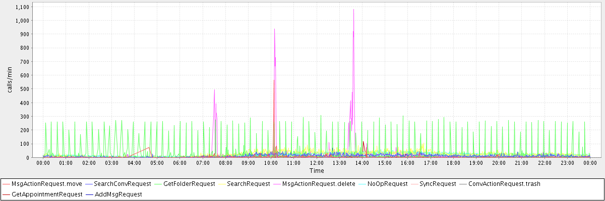 max(MsgActionRequest.move) = 563.00 max(SearchConvRequest) = 44.00 max(GetFolderRequest) = 306.00 max(SearchRequest) = 105.00 max(MsgActionRequest.delete) = 1080.00 max(NoOpRequest) = 57.00 max(SyncRequest) = 62.00 max(ConvActionRequest.trash) = 34.00 max(GetAppointmentRequest) = 117.00 max(AddMsgRequest) = 68.00