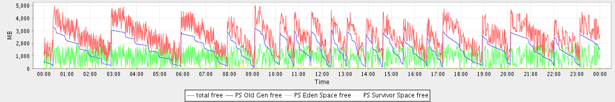 avg(total free) = 2589.06 avg(PS Old Gen free) = 1563.41 avg(PS Eden Space free) = 942.19 avg(PS Survivor Space free) = 83.47