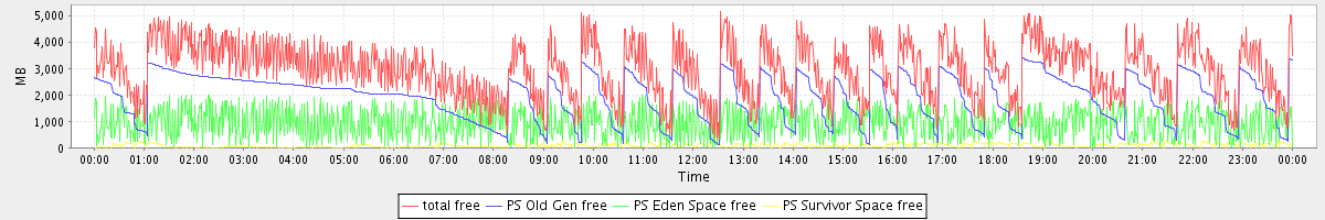 avg(total free) = 2950.61 avg(PS Old Gen free) = 1924.23 avg(PS Eden Space free) = 937.41 avg(PS Survivor Space free) = 88.97