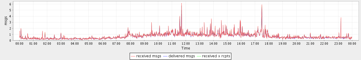 avg(received msgs) = 0.69 avg(delivered msgs) = 0.67 avg(received x rcpts) = 0.69
