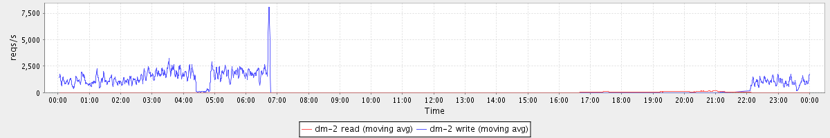 avg(dm-2 read) = 18.83 avg(dm-2 write) = 504.78