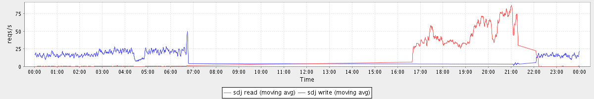 avg(sda read) = 24.14 avg(sda write) = 46.01