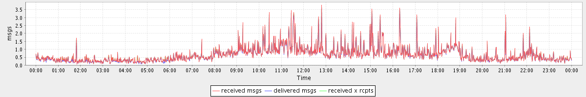 avg(received msgs) = 0.67 avg(delivered msgs) = 0.66 avg(received x rcpts) = 0.67