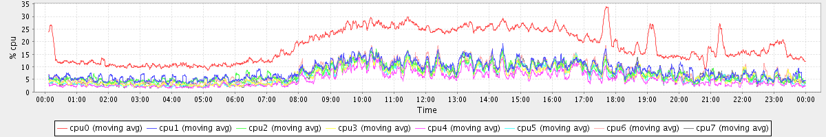 avg(cpu0) = 1.21 avg(cpu1) = 0.26 avg(cpu2) = 0.24 avg(cpu3) = 0.12 avg(cpu4) = 0.10 avg(cpu5) = 0.11 avg(cpu6) = 0.21 avg(cpu7) = 0.12